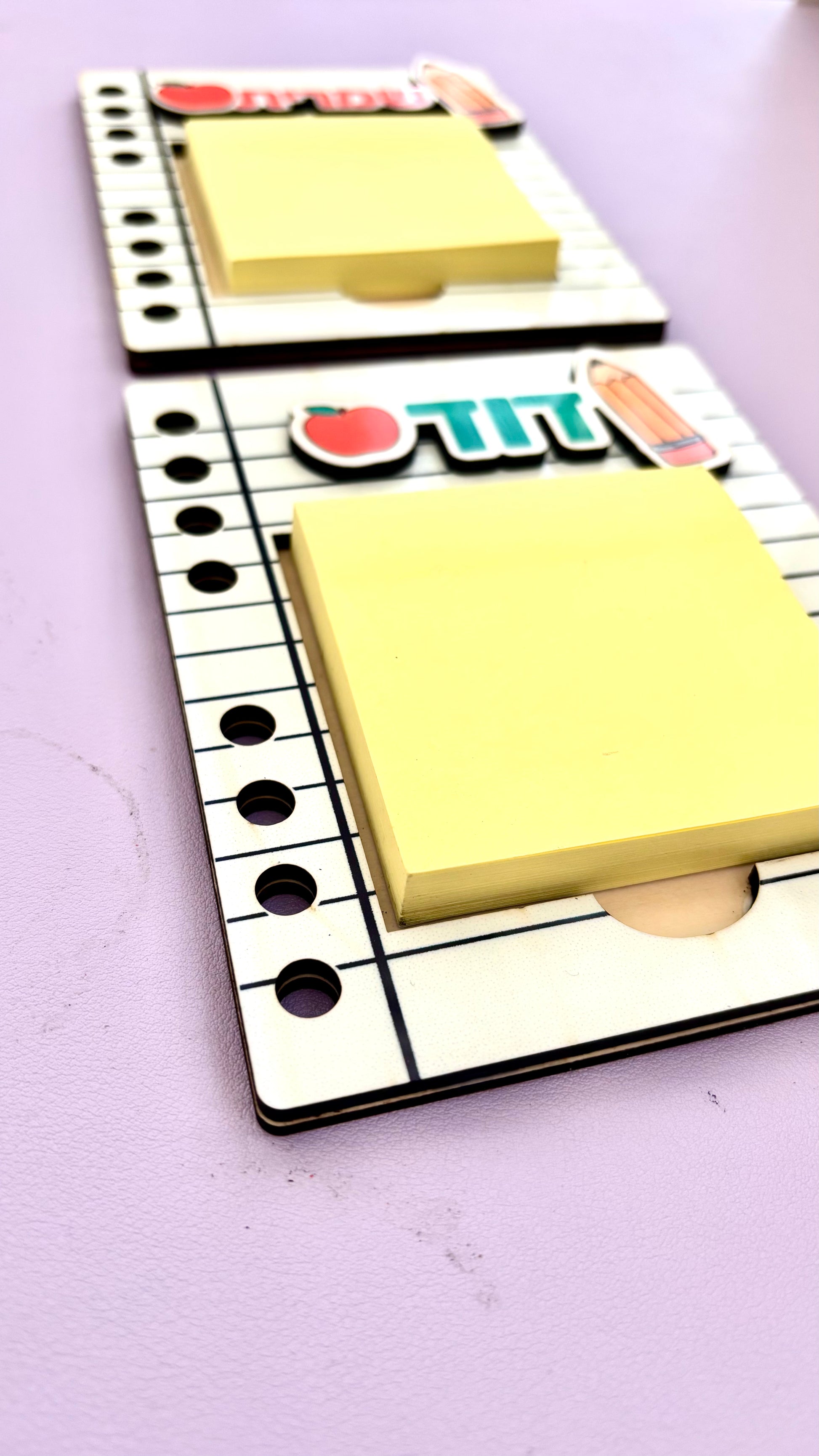 מעמד עץ לדפי ממו בעיצוב אישי, מושלם למורה שאוהבים להפתיע במתנה עם מחשבה.