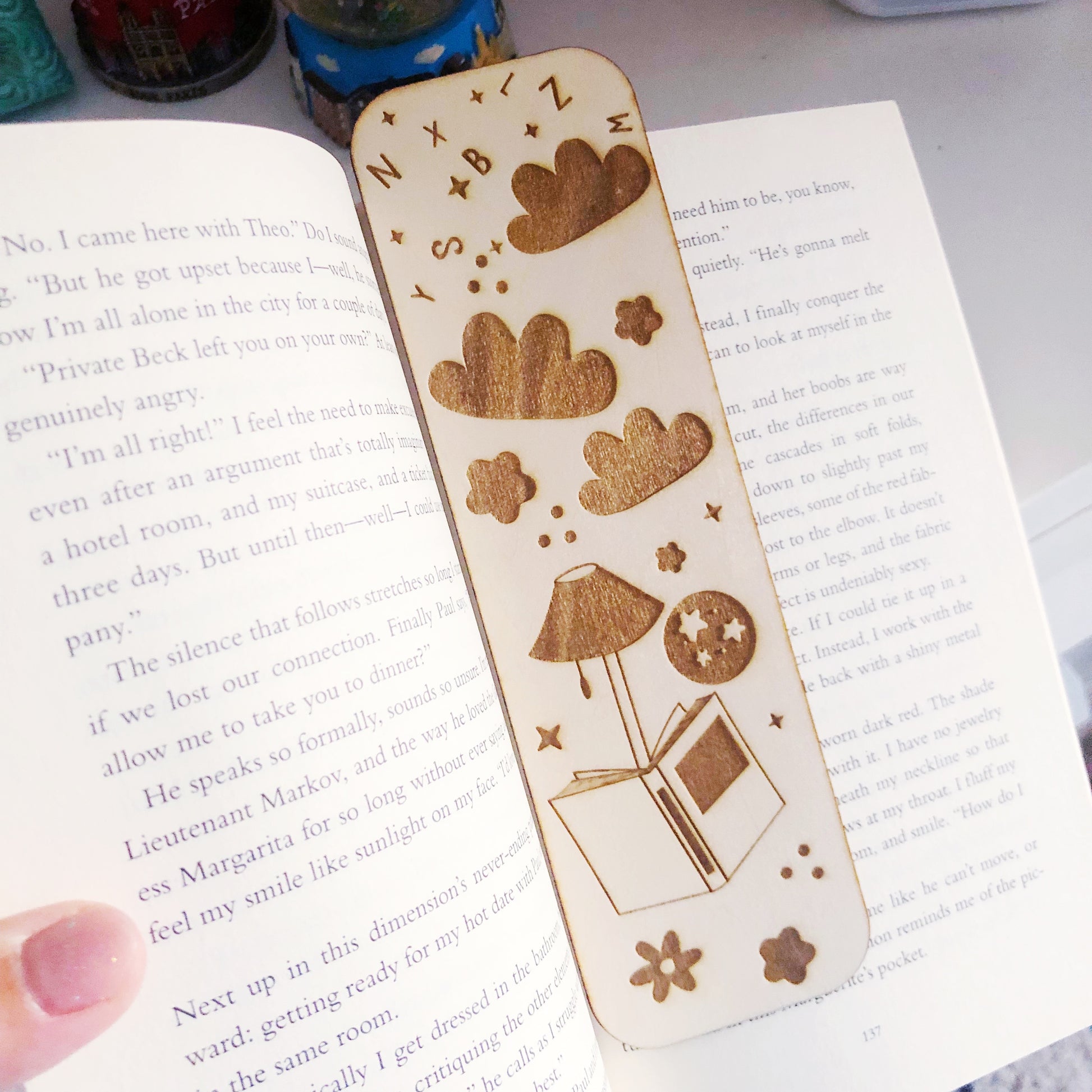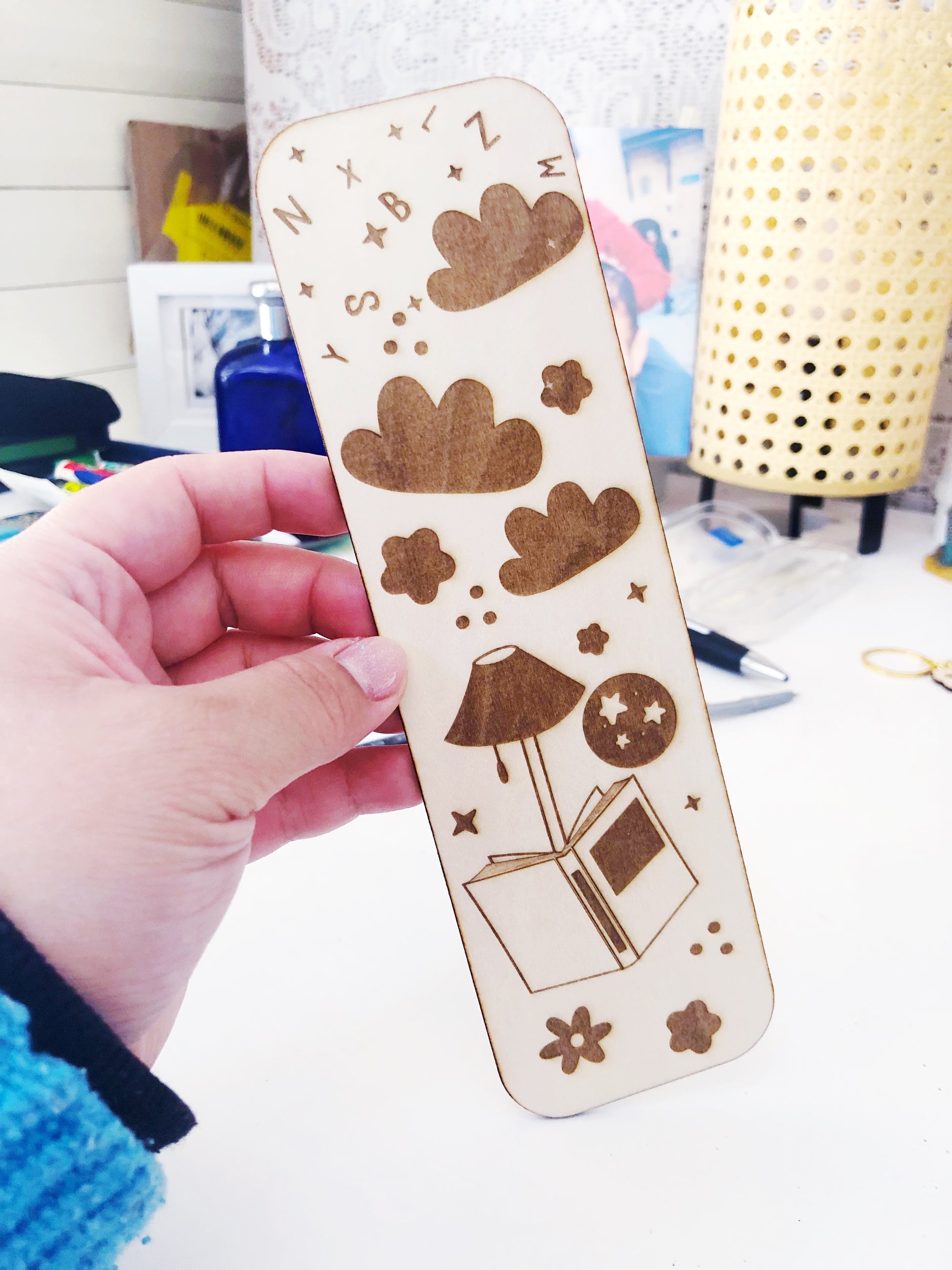 הסימניה עשויה מעץ טבעי, נחתכת ונחרטת בסטודיו שלי בתהליך מוקפד, כך שכל פריט מקבל אופי מיוחד ומראה חם וטבעי.