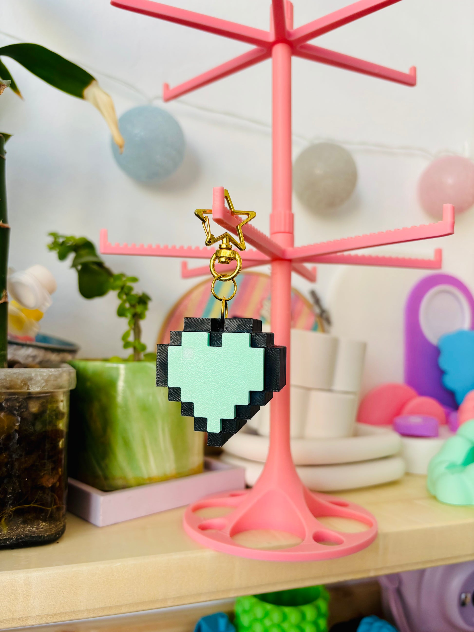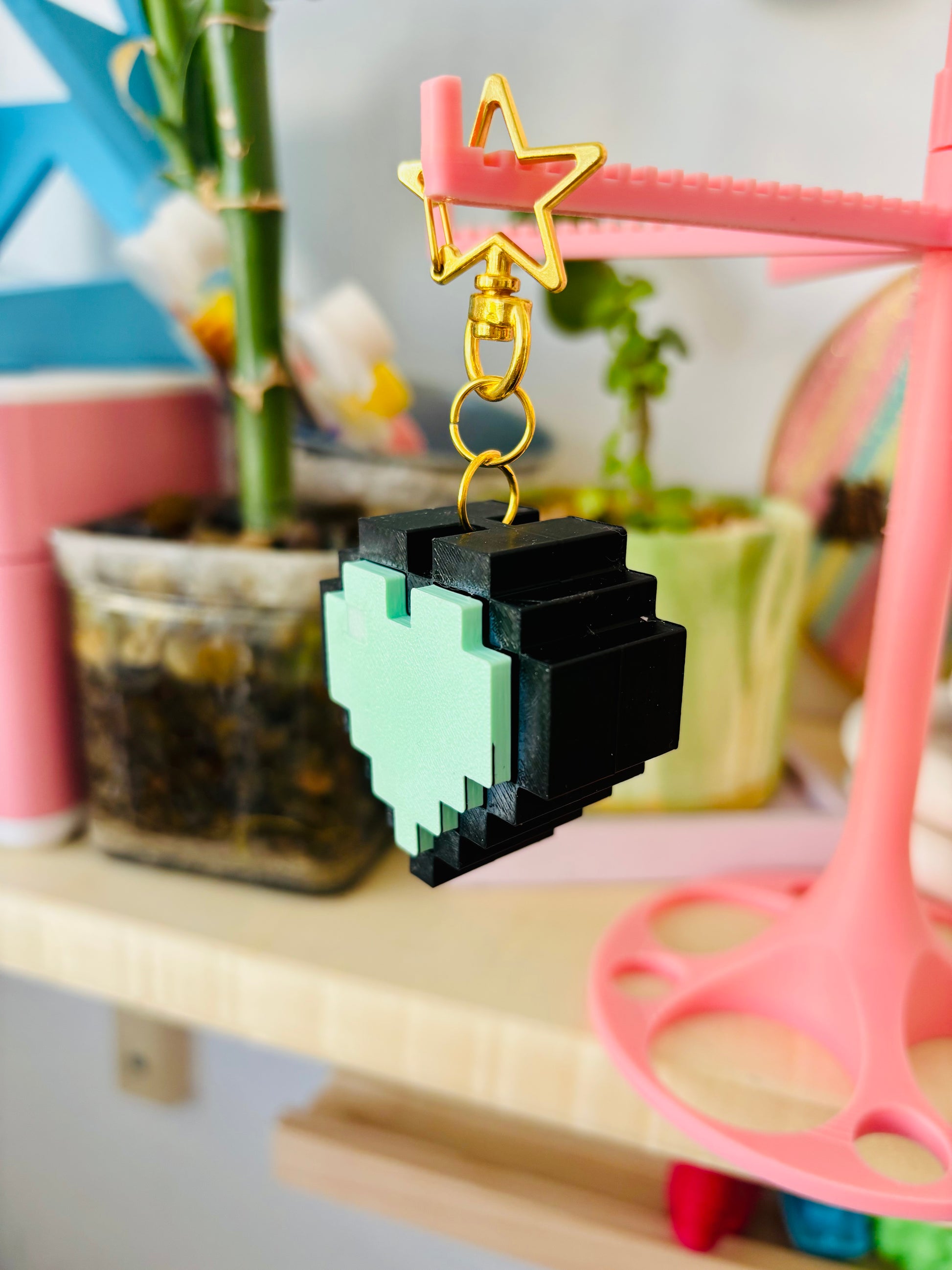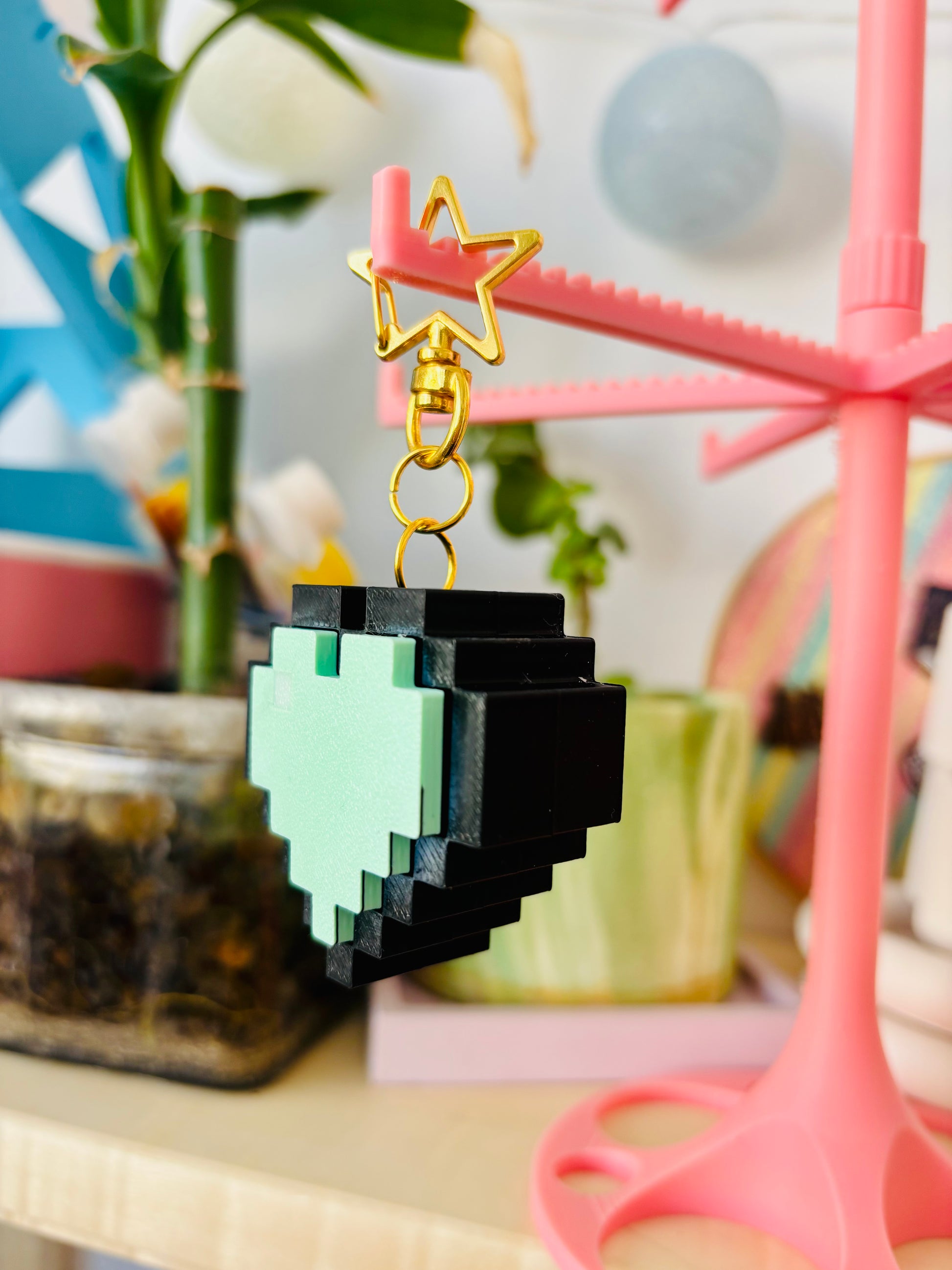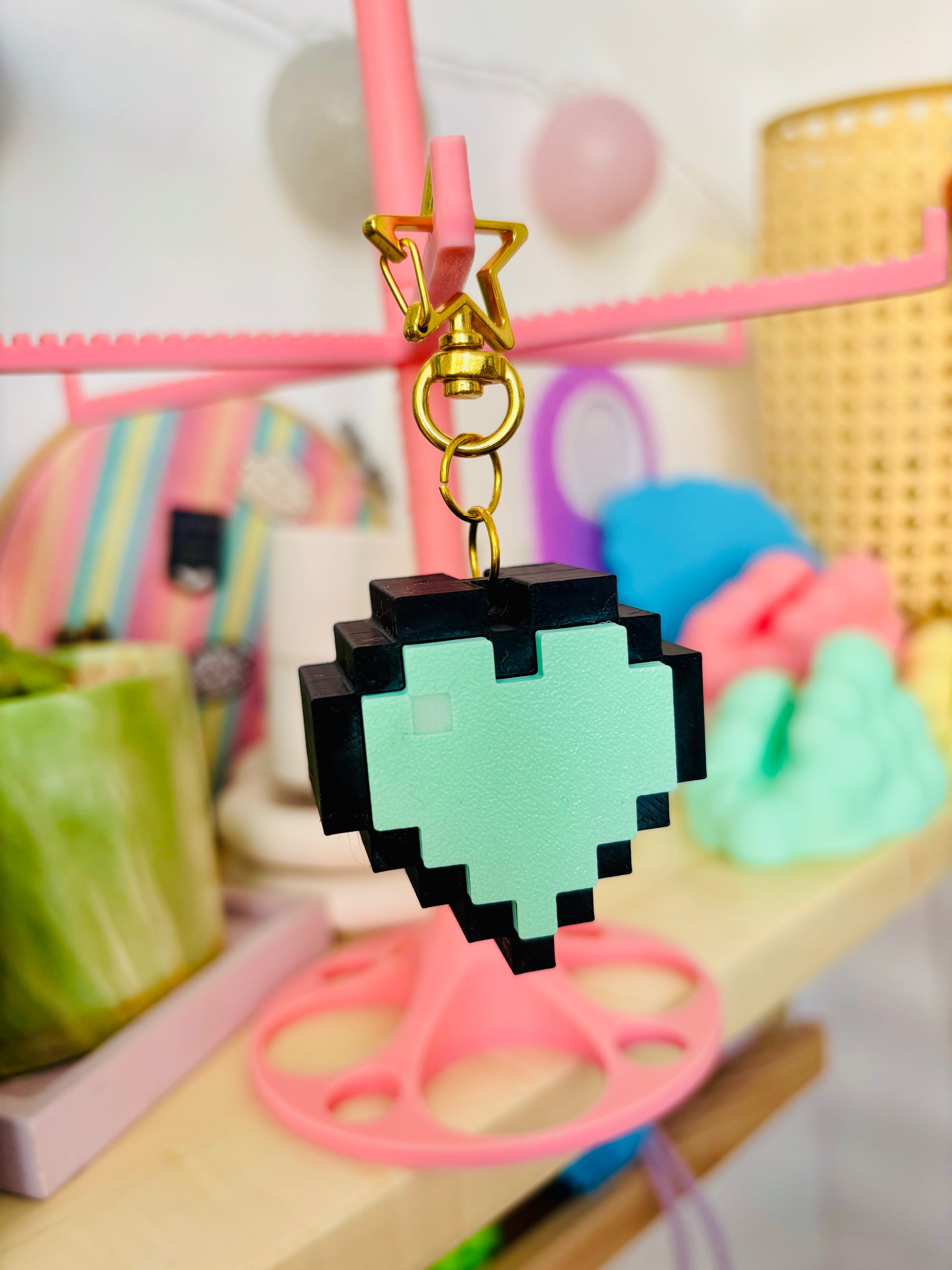קליקר גיימינג לב פיקסלים מחזיק מפתחות
