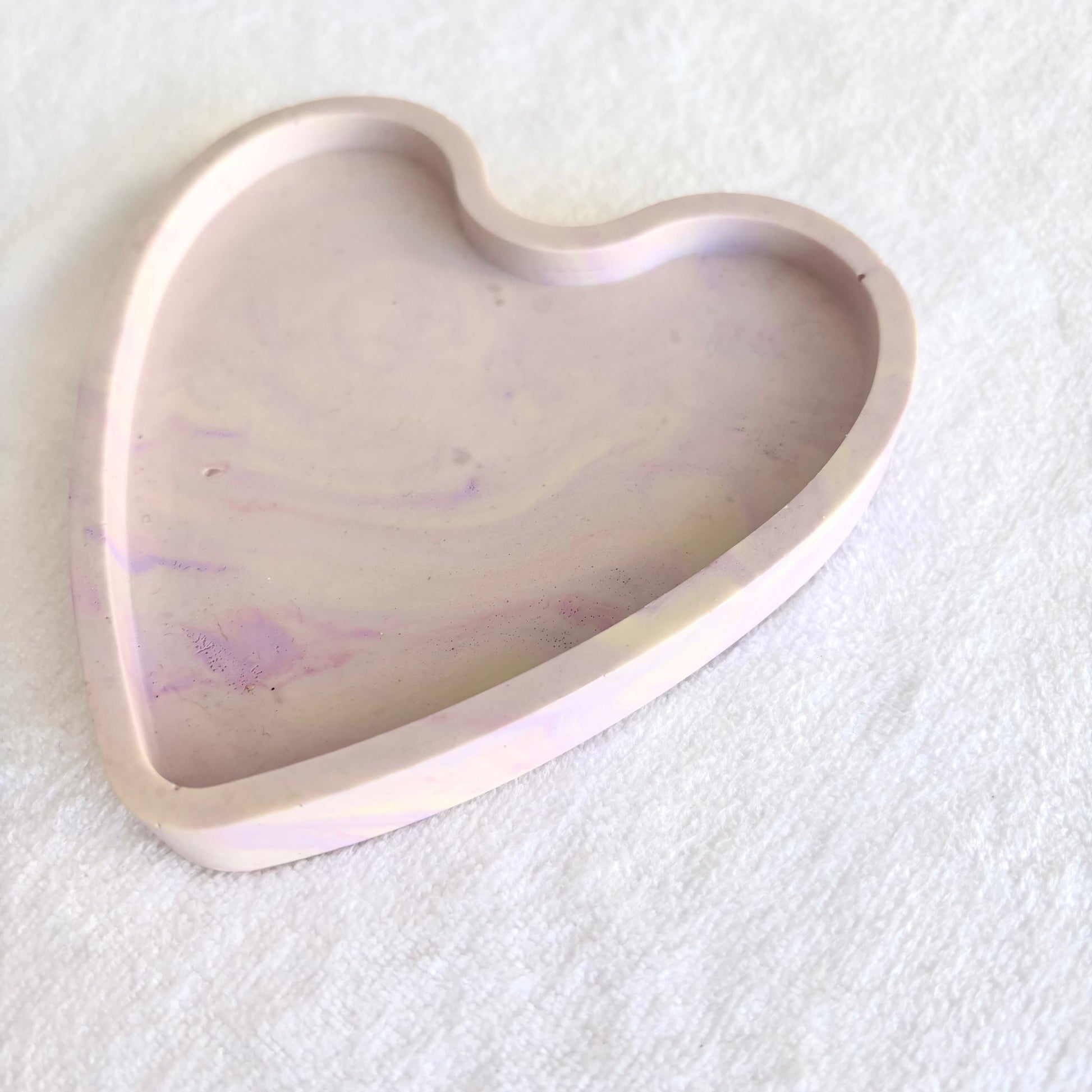 מגש דקורטיבי בעיצוב לב עם קווים רכים ונוכחות עדינה אך מרשימה.
