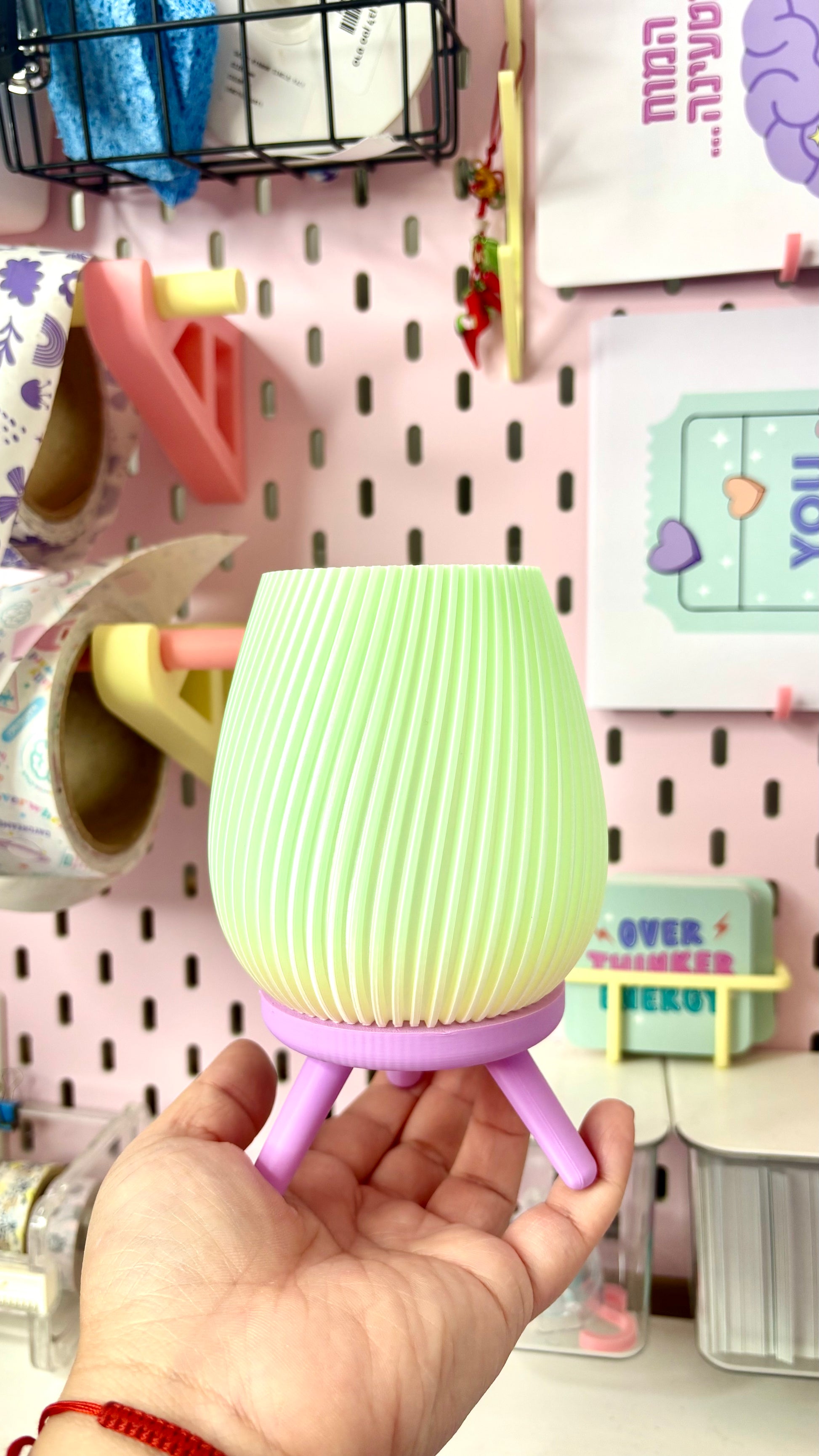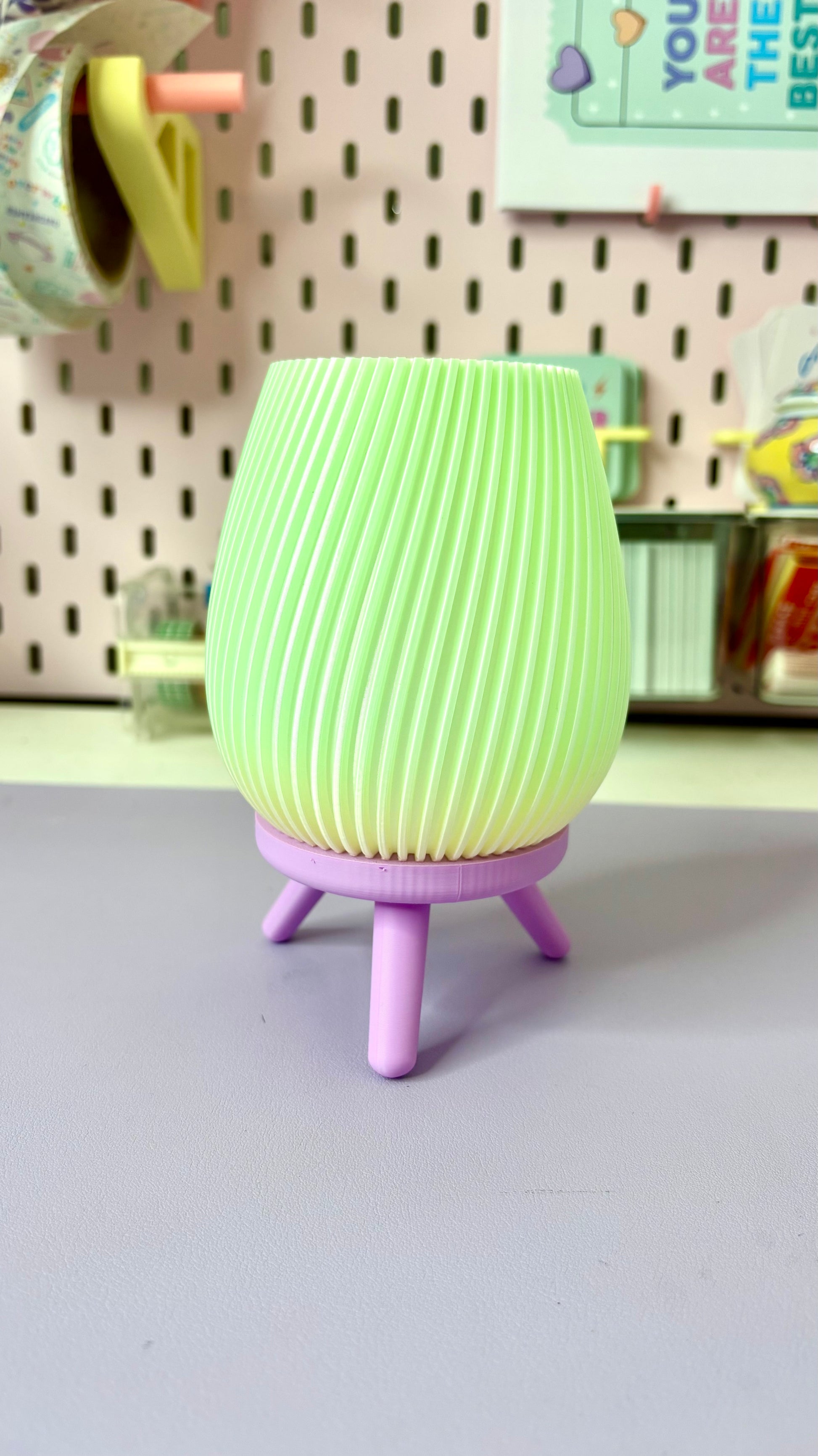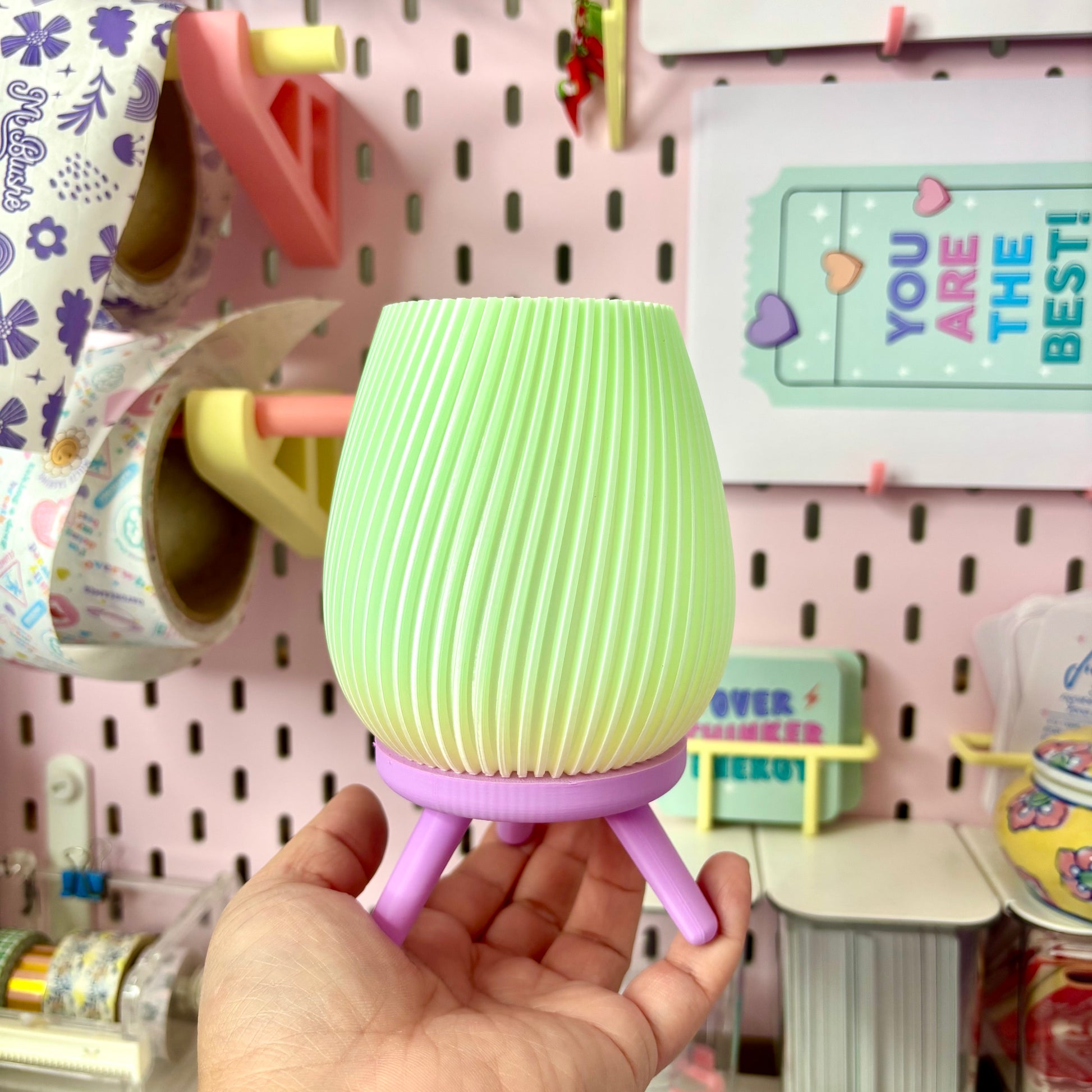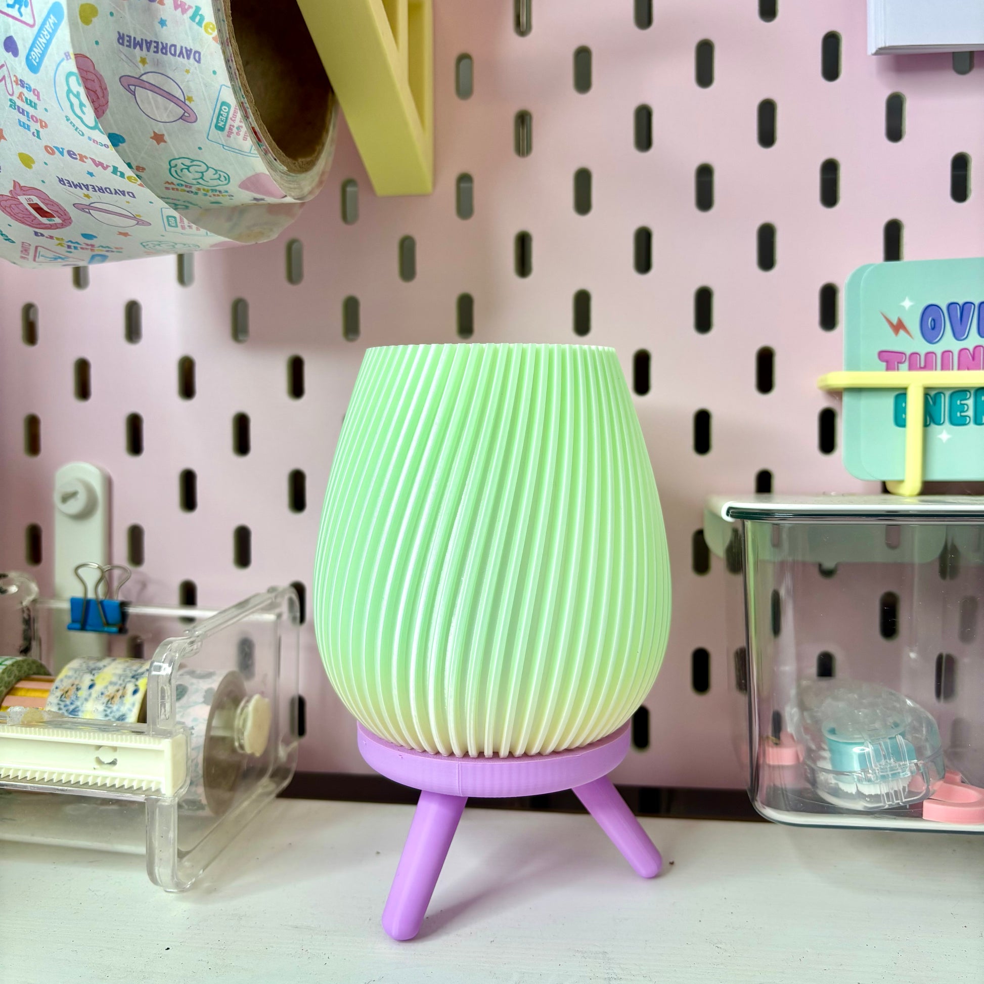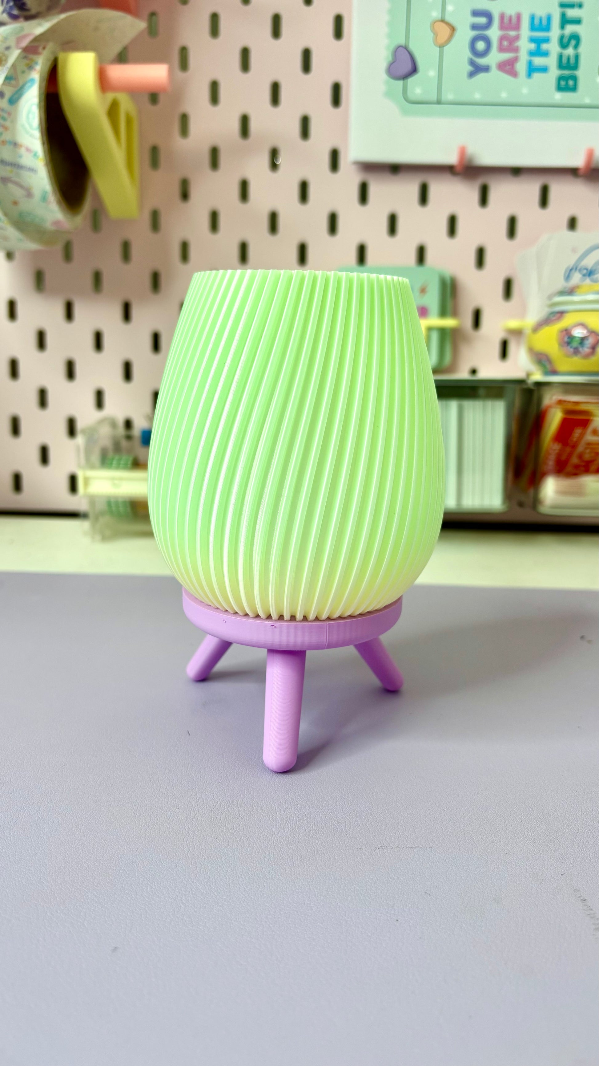 מנורת שולחן דקורטיבית בעיצוב פיסולי רך עם רגליים, שמוסיפה אופי ונוכחות לכל חלל. המנורה מיוצרת בהדפסת תלת מימד בסטודיו שלי מחומר PLA איכותי, תוך הקפדה על פרטים וגימור נקי.