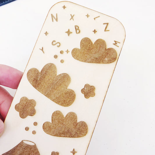סימניית עץ עם חריטה ואיור מזל